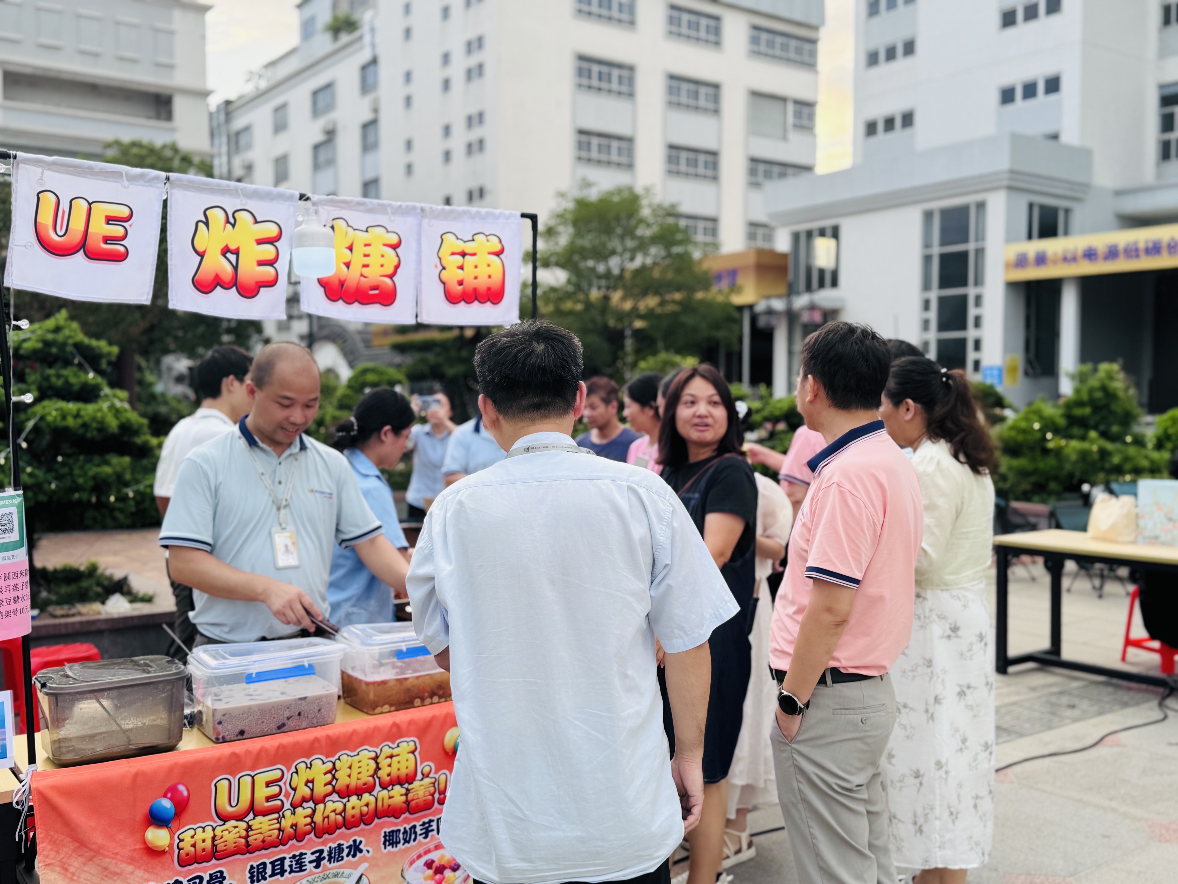 集市售卖区更是香气扑鼻、人气十足:滋滋冒油的脆皮烤肠泛着金黄,酸辣开胃的秘制凉拌勾人食欲,清爽解腻的手打柠檬茶冒着冰凉气泡,还有金黄酥脆的油炸小食、松软香甜的烘焙蛋糕…… 琳琅满目的特色美味引得大家频频驻足,手里捧着美食、嘴里尝着香甜,每个人脸上都漾着满足又幸福的笑容。